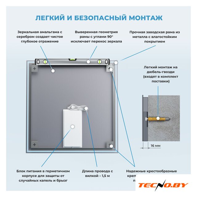 зеркало, с подсветкой, подвесная установка