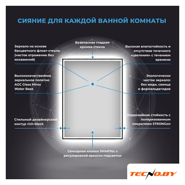 зеркало, с подсветкой, подвесная установка
