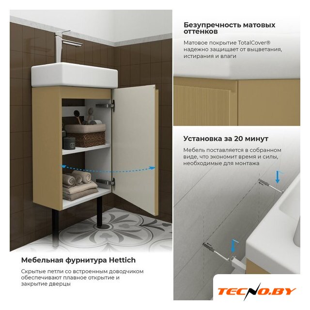 тумба под умывальник, умывальник в комплекте, напольная/подвесная установка, ширина: 40 см