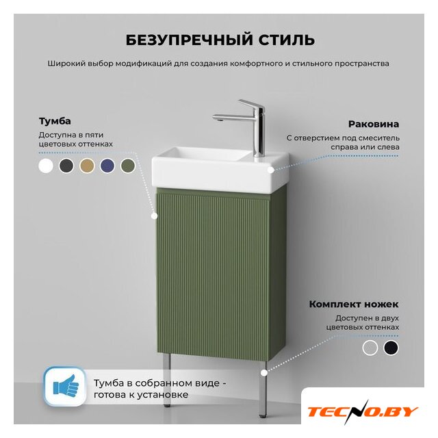 тумба под умывальник, умывальник в комплекте, напольная/подвесная установка, ширина: 40 см