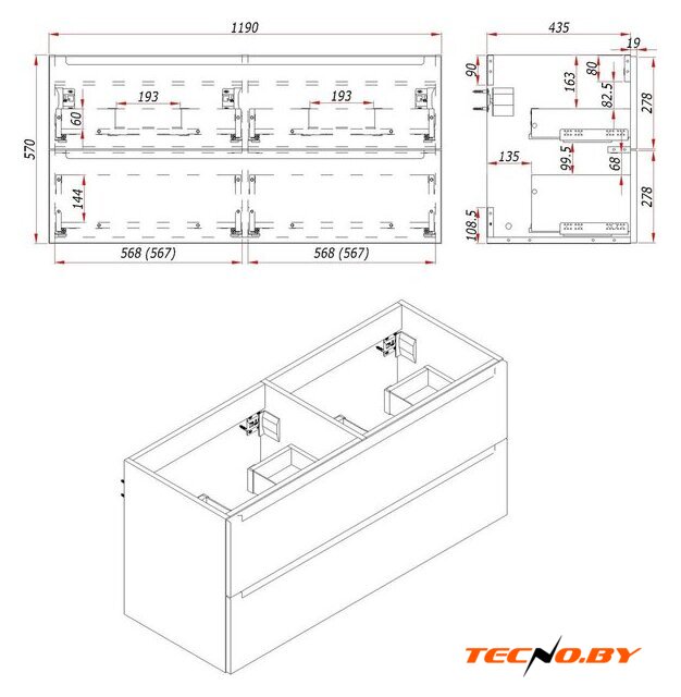 тумба под умывальник, подвесная установка, ширина: 60 см