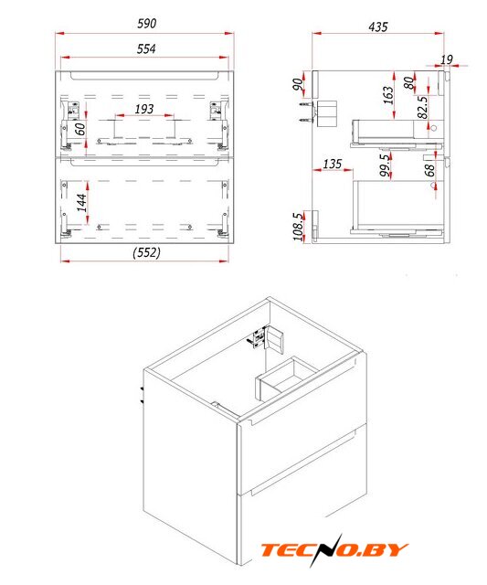 тумба под умывальник, подвесная установка, ширина: 59 см