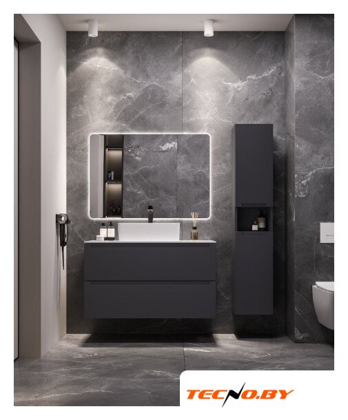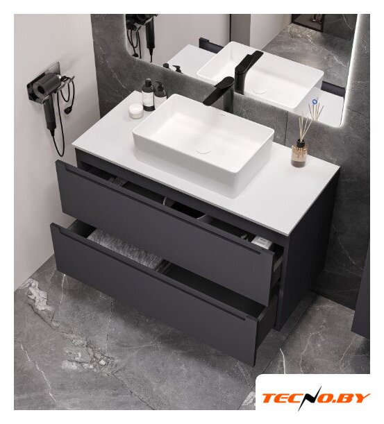 тумба под умывальник, умывальник в комплекте, подвесная установка, ширина: 101 см