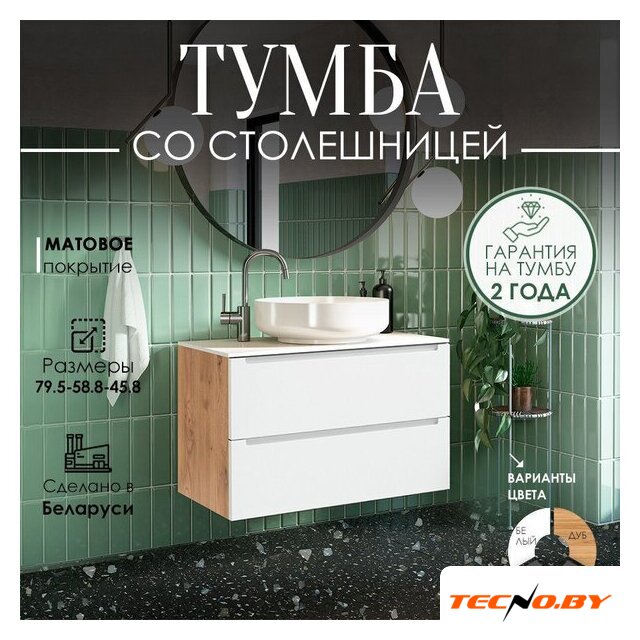 | Под умывальник шириной | 80 см |