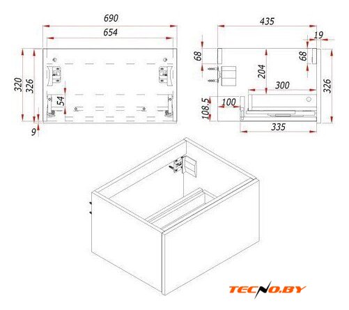 тумба под умывальник, подвесная установка, ширина: 59 см