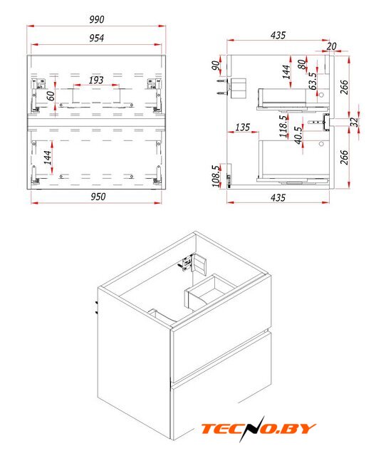 тумба под умывальник, подвесная установка, ширина: 99 см
