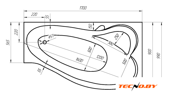 📏✨ Откройте для себя гармонию формы и функциональности с ванной 1Марка Gracia 170x99R!