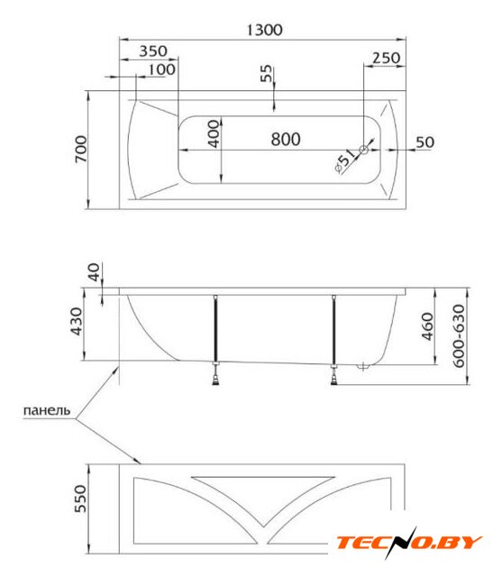 Описание товара: Ванна 1Марка Modern 130x70 (с каркасом)