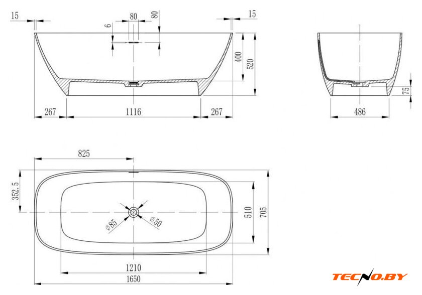 овальная, литьевой акрил, отдельностоящая, объем: 273 л