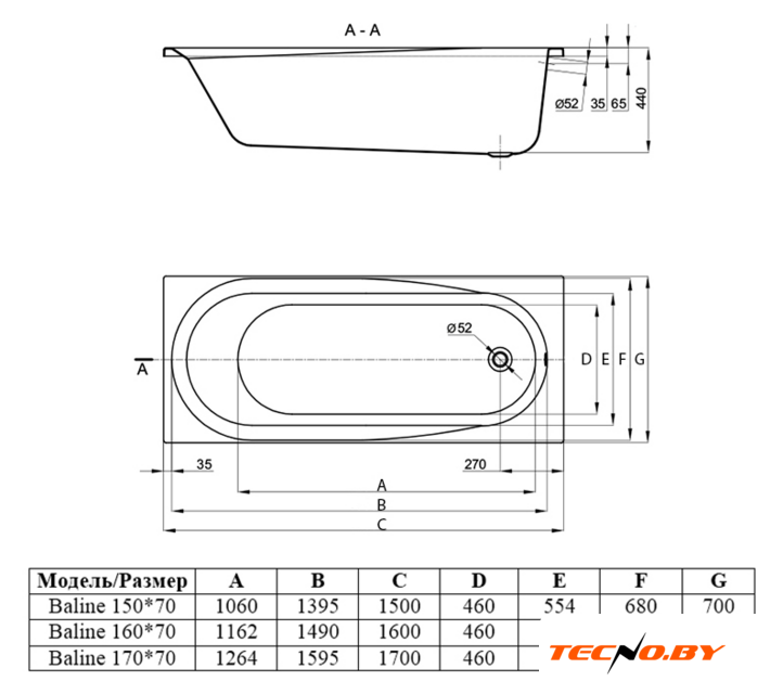 150x70 см, объём: 180 л