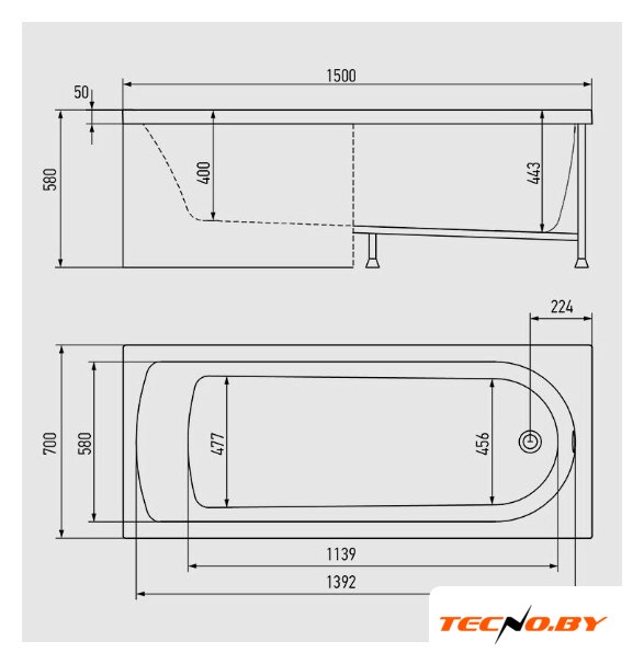 170x70 см, объём: 223 л