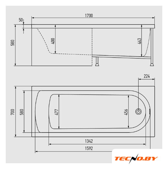 Одноместная ванна предоставляет оптимальные размеры для максимального комфорта — длина 170 см, ширина 70 см и высота 58 см. Просторный полезный объем в 223 литра позволяет забыть о повседневных заботах и полностью расслабиться после напряженного дня.