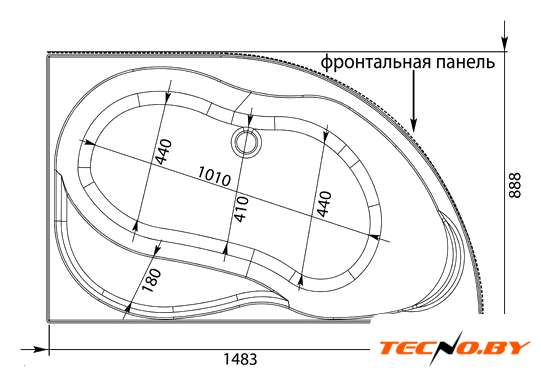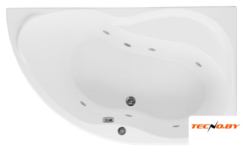 Ванна имеет длину 148 см, ширину 89 см и высоту 70 см, что обеспечивает комфорт при использовании. Глубина в 45 см позволяет полностью погрузиться в воду без лишних брызг. Расположенная в углу, она экономит место и подходит для ванной любого размера.