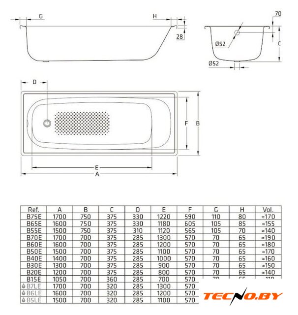 С размерами 150 см в длину и 70 см в ширину, ванна BLB Europa идеально впишется в большинство ванных комнат, предлагая комфорт для одного человека. С полезным объемом 145 л, эта ванна позволяет вам расслабиться и насладиться водными процедурами в полной мере. Глубина ванны составляет 38 см, что способствует поддержанию оптимального уровня воды и тепла.