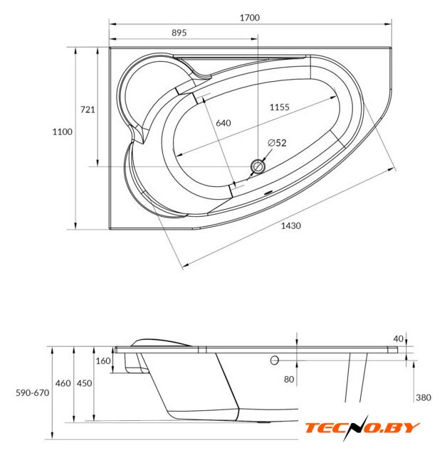 Ванна имеет внушительные размеры: 170 см в длину и 110 см в ширину. Это позволяет удобно расположиться в ванне, наслаждаясь теплом и комфортом. Глубина 45 см и полезный объем 340 литров обеспечат вам полное погружение и расслабление после длительного дня. Благодаря своей вместительности она идеально подходит для одного человека, кто любит наслаждаться уединением и спокойствием.