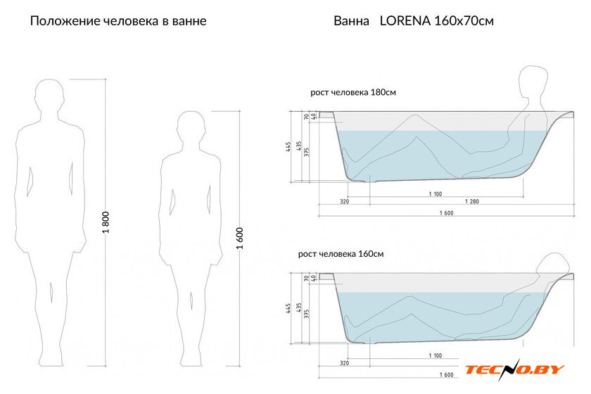 Ванна спроектирована так, чтобы предоставлять максимальное удобство: длина 160 см и ширина 70 см идеально подходят для стандартных ванных комнат. Внутренние размеры рассчитаны таким образом, чтобы обеспечить комфортное принятие водных процедур для одного человека. Полезный объем в 200 литров позволяет наполнить ванну водой для приятного погружения.