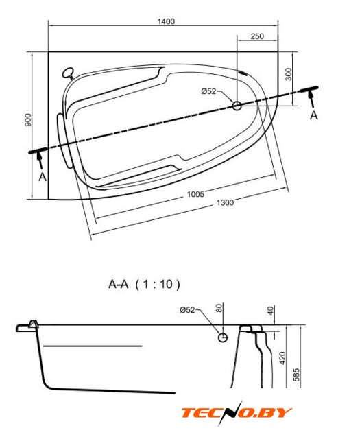 Ванна обладает угловой асимметричной формой, что позволяет эффективно использовать пространство даже в небольших ванных комнатах. Ее левосторонняя ориентация делает ее подходящим выбором для многих планировок. Длина ванны равна 140 см, а ширина — 90 см, что обеспечивает комфорт даже при ограниченном пространстве.
