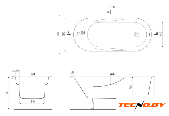 Ванна имеет длину 170 см, ширину 70 см и высоту 58 см, при этом максимальная глубина ванны составляет 39 см. Эти размеры делают ее идеальным выбором для большинства стандартных ванных комнат. Прямоугольная форма позволяет рационально использовать пространство, а одно место в ванне обеспечивает комфортное принятие процедур в одиночку.