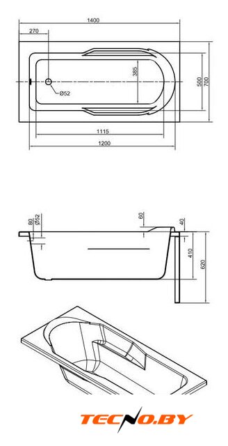 С размерами 140 см в длину и 70 см в ширину, эта ванна предлагает полезный объем в 155 литров. Глубина 41 см обеспечивает достаточно места для комфортного и расслабляющего купания. Эта модель создана для одного человека, предоставляя достаточно пространства для полноценного отдыха после долгого дня.