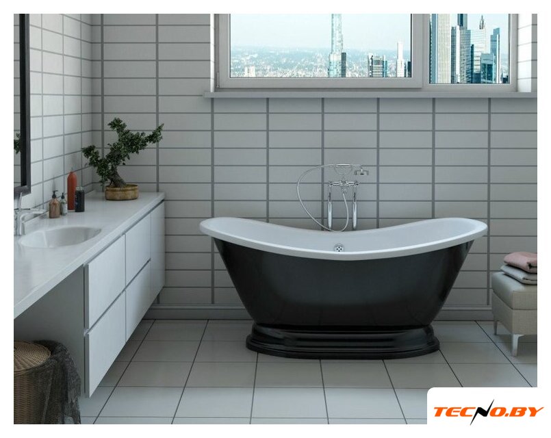 Эта отдельностоящая ванна требует минимальных усилий для установки, однако учтите, что ножки и каркас приобретаются отдельно. Ванна весит 80 кг, что обеспечивает ее устойчивость и надежность, несмотря на отсутствие противоскользящего покрытия дна.