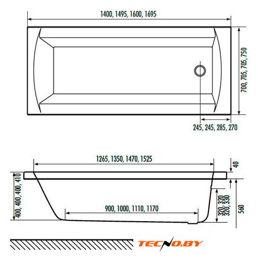 прямая, акрил, объем: 152 л