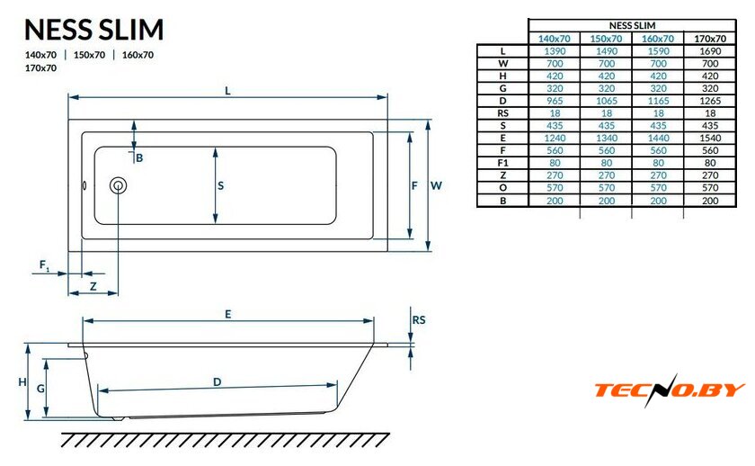 С размерами 159 см в длину и 70 см в ширину, эта ванна обеспечивает комфортное пространство для одного человека. Высота 42 см и полезный объем 205 литров делают ее отличным выбором для эффективного использования воды и комфортного погружения. Глубина до перелива составляет 32 см, что обеспечивает безопасность при использовании.