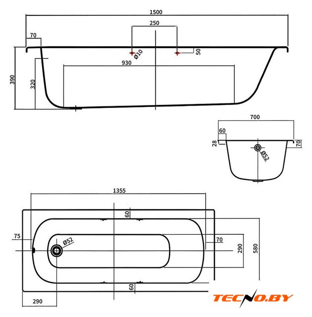 | Глубина ванны | 39 см |