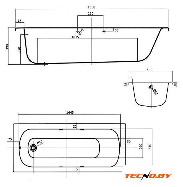 | Глубина ванны | 39 см |