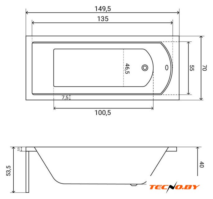 149.5x70 см, объём: 165 л