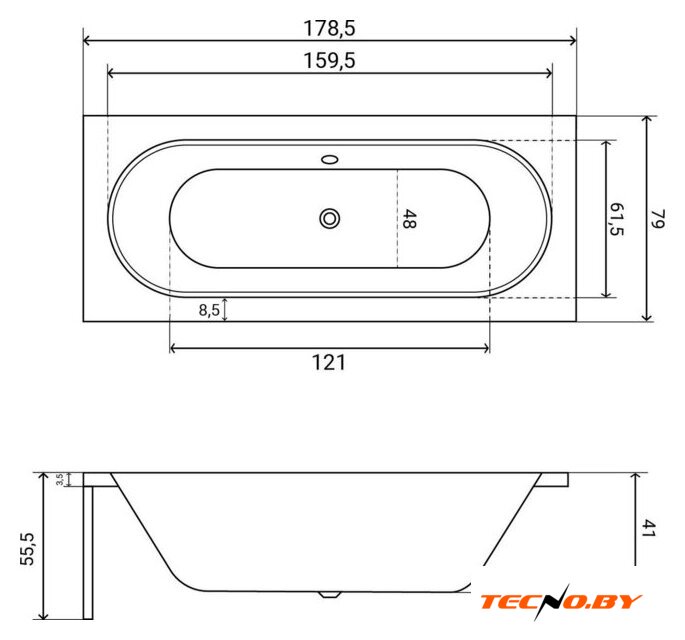159.5x75 см, объём: 175 л