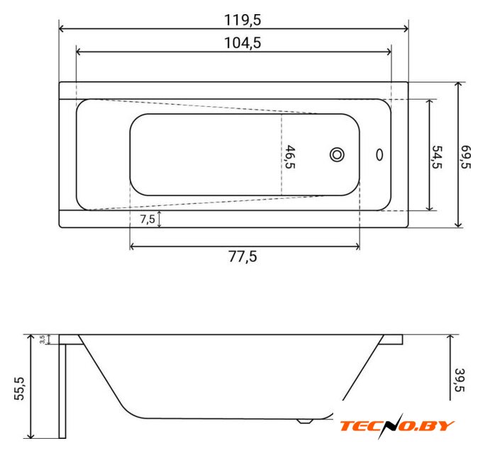 | Глубина ванны | 39.5 см |