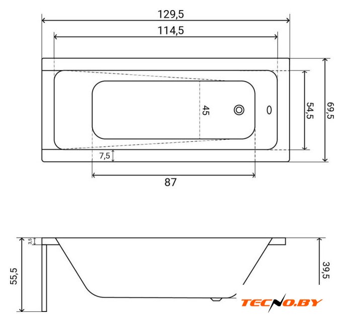 | Глубина ванны | 39.5 см |