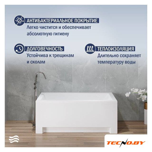 прямая, акрил, отдельностоящая, объем: 180 л