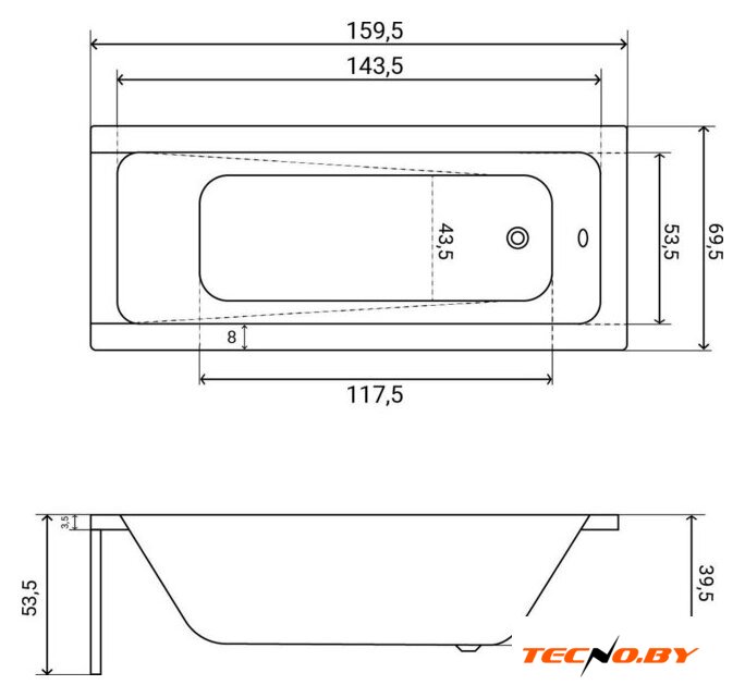 | Глубина ванны | 39.5 см |
