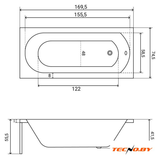 169.5x74.5 см, объём: 190 л