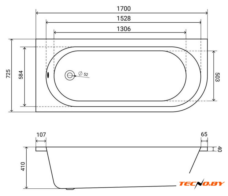 прямая, акрил, объем: 113 л