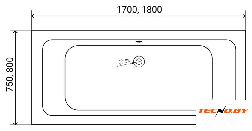 прямая, акрил, отдельностоящая, объем: 165 л