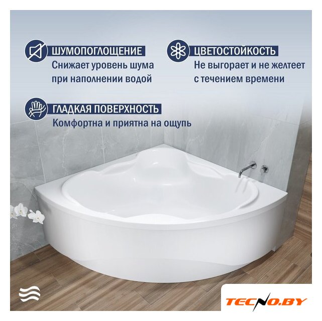 Ванна Lauter Riviera 150x150 21050150 (с ножками и сифоном 21Y11021 матовый черный)