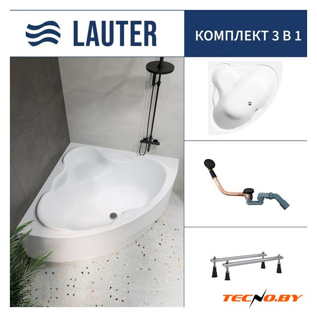 Ванны Lauter Lauter Riviera 150x150 21050150 (с ножками и сифоном 21Y11021 матовый черный)