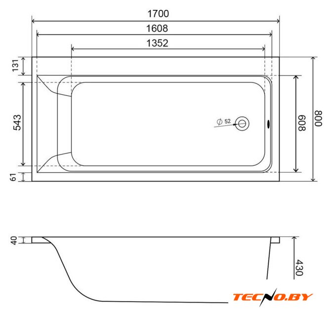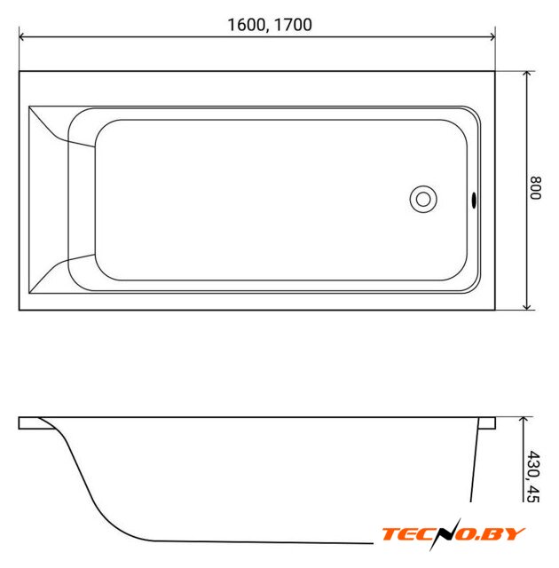 170x80 см, объём: 235 л