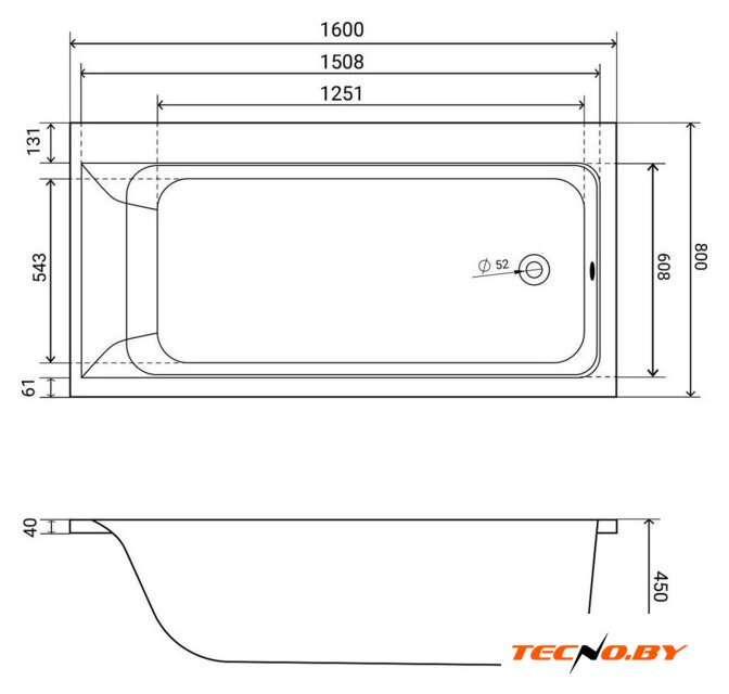 прямая, акрил, объем: 158 л