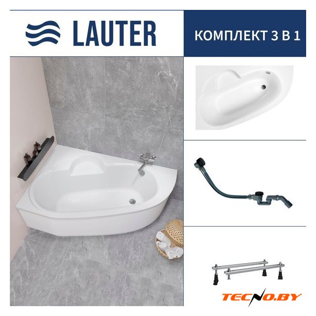 Lauter Valencia 150x100 2102150L (с ножками, лицевым экраном и сифоном 21Y11022 белый)