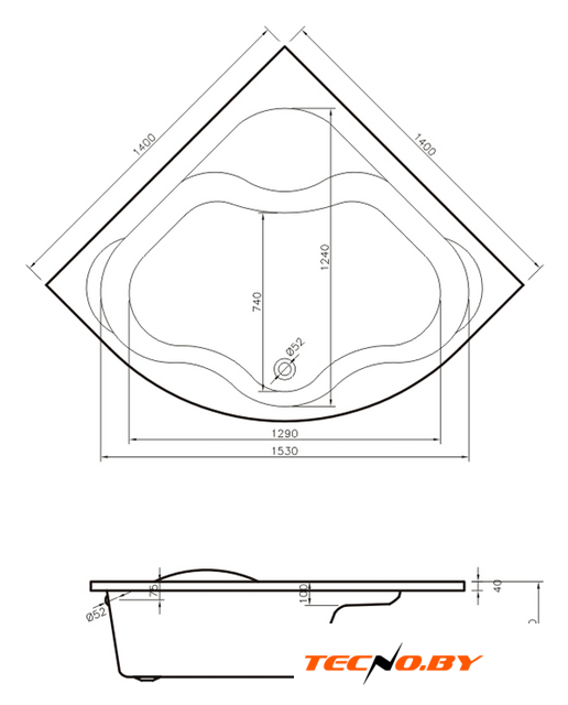 прямая, акрил, объем: 165 л