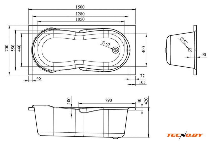 С длиной в 150 см и шириной 70 см, ванна Lavinia Boho Easter Pro обеспечит достаточно пространства для комфортного принятия водных процедур. Высота в 42 см делает ее удобной для ежедневного использования, а полезный объем в 160 литров гарантируст простор для расслабления в конце тяжелого дня.