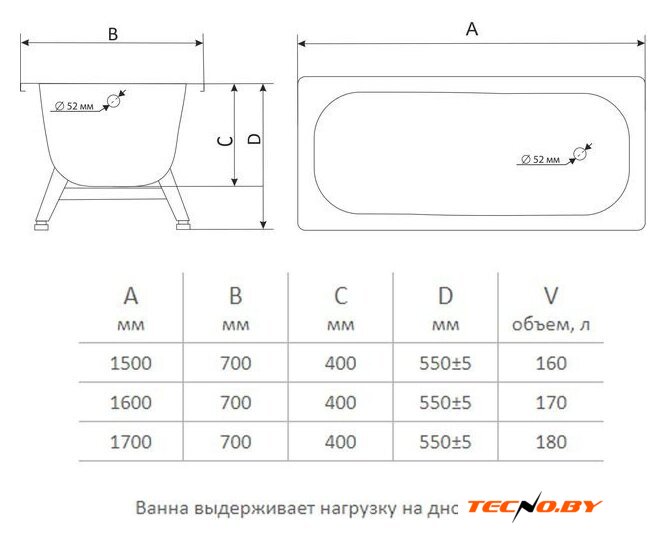 Оцените эстетику и удобство ванны ОАО "ВИЗ" Tevro 170x70, которая станет настоящим украшением вашей ванны и подарит множество приятных моментов.