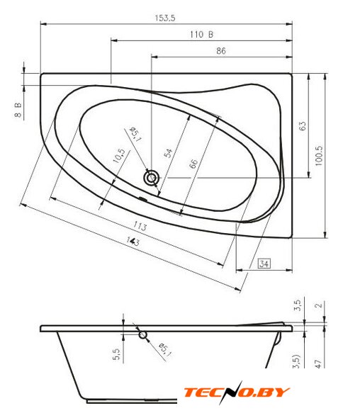 угловая, акрил, объем: 335 л