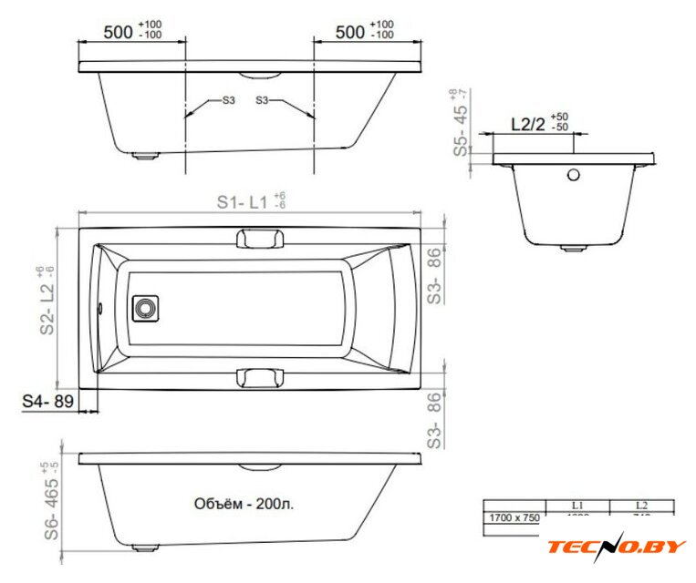 С параметрами 170 см в длину и 75 см в ширину, ванна обеспечивает достаточно пространства для одного человека, предлагая объем в 200 литров. Глубина ванны в 45.5 см способствует максимальному комфорту и расслаблению во время купания. Компактные размеры делают ее идеальным выбором для различных пространств.