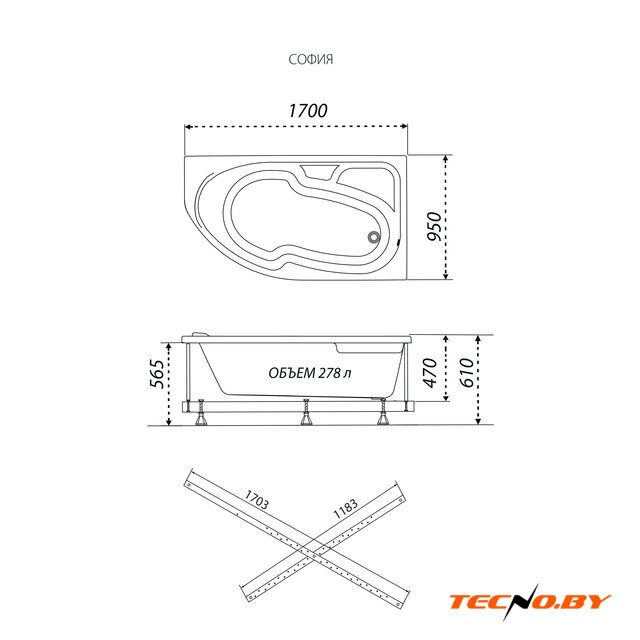 🛀 Длина 170 см и ширина 95 см позволяют наслаждаться комфортными водными процедурами. Несмотря на свои скромные размеры, ванна обладает внушительным полезным объемом в 278 литров, что идеально подходит для одного человека. Угол установки слева оптимизирует размещение ванны в пространстве, обеспечивая свободу передвижения и удобство использования.