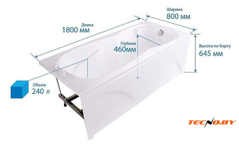 Обладая длиной 180 см и шириной 80 см, ванна идеально подходит для полноценного купания и расслабления. Глубина ванны составляет 45.5 см, что позволяет погрузиться в теплую воду и насладиться моментом отдыха. Полезный объем 240 литров является достаточно емким для комфортного принятия водных процедур, даря чувство уюта и уединения. 🛀