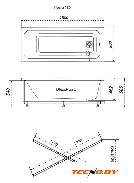 С размерами 180 см в длину и 80 см в ширину, ванна предлагает вам достаточно места для удобного расположения. Полезный объем в 280 литров позволит расслабиться и забыть о суете повседневной жизни. Глубина ванны в 46.2 см обеспечивает погружение всего тела для полноценного расслабления.